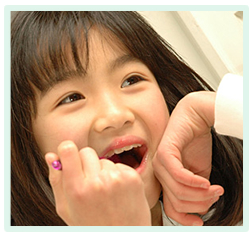 虫歯を予防するには毎日の歯磨きが基本です。プラーザ駅前歯科クリニックでは、正しいブラッシング方法を指導し、清潔で虫歯になりにくい口腔環境を保つ習慣作りをするほか、定期的な健診やフッ素塗布を行う「虫歯予防KID'S外来」実施しています。永久歯に生え換わる大事な時期、咬みあわせや歯並びの問題なども早期に発見できます。がんばった“小さな患者様”にプレゼント